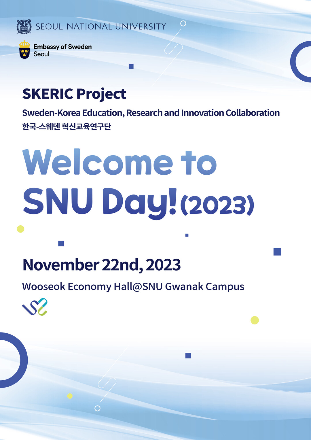 22일 오전 진행되는 SNU Day는 한국-스웨덴 혁신교육연구단 추진을 위해 마련됐다. 이 프로젝트는 국내 3개 대학, 스웨덴 5개 대학이 참여하는 새로운 시도의 연구·교육 협력 프로젝트로, 스웨덴국제교류재단(STINT)이 지원하는 역대 최대 규모의 과제이다.