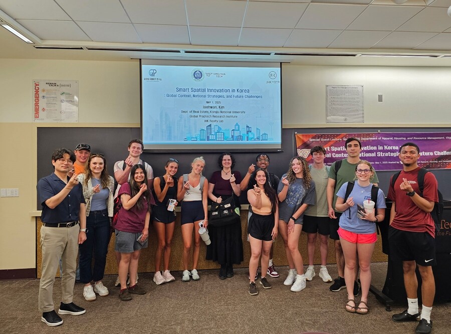이날 ‘글로벌 기술 및 도시정책 트렌드, 한국형 스마트 공간정책의 진화 방향, 프롭테크 기반 민간 참여 전략, 도시공간의 공공성과 지속가능성 확보방안’ 등을 중심으로 한국 사례를 통해 도시혁신의 실천적 전략을 버지니아텍 주거디자인, 부동산, 스마트시티, 자원관리를 전공하는 학생들과 교수진 30여 명이 함께 했다.