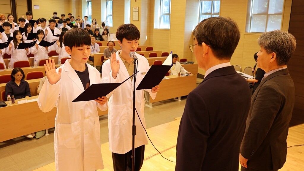 학생 대표로 디오스코리데스 선서를 한 이태훈 학생은 “약학의 전문인으로서 내 삶을 인류를 위해 바치겠다”고 다짐했다.