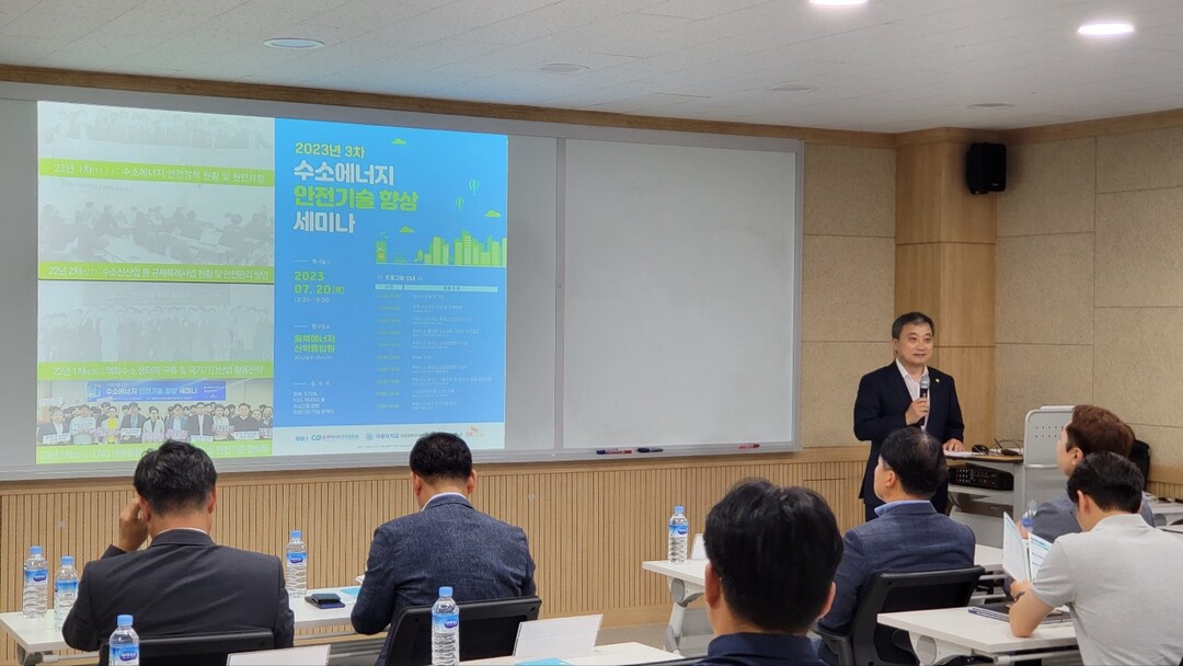 충북혁신도시 에너지캠퍼스에서 수소에너지 안전기술 향상 세미나를 개최하고 있다. 사진=극동대 제공 |