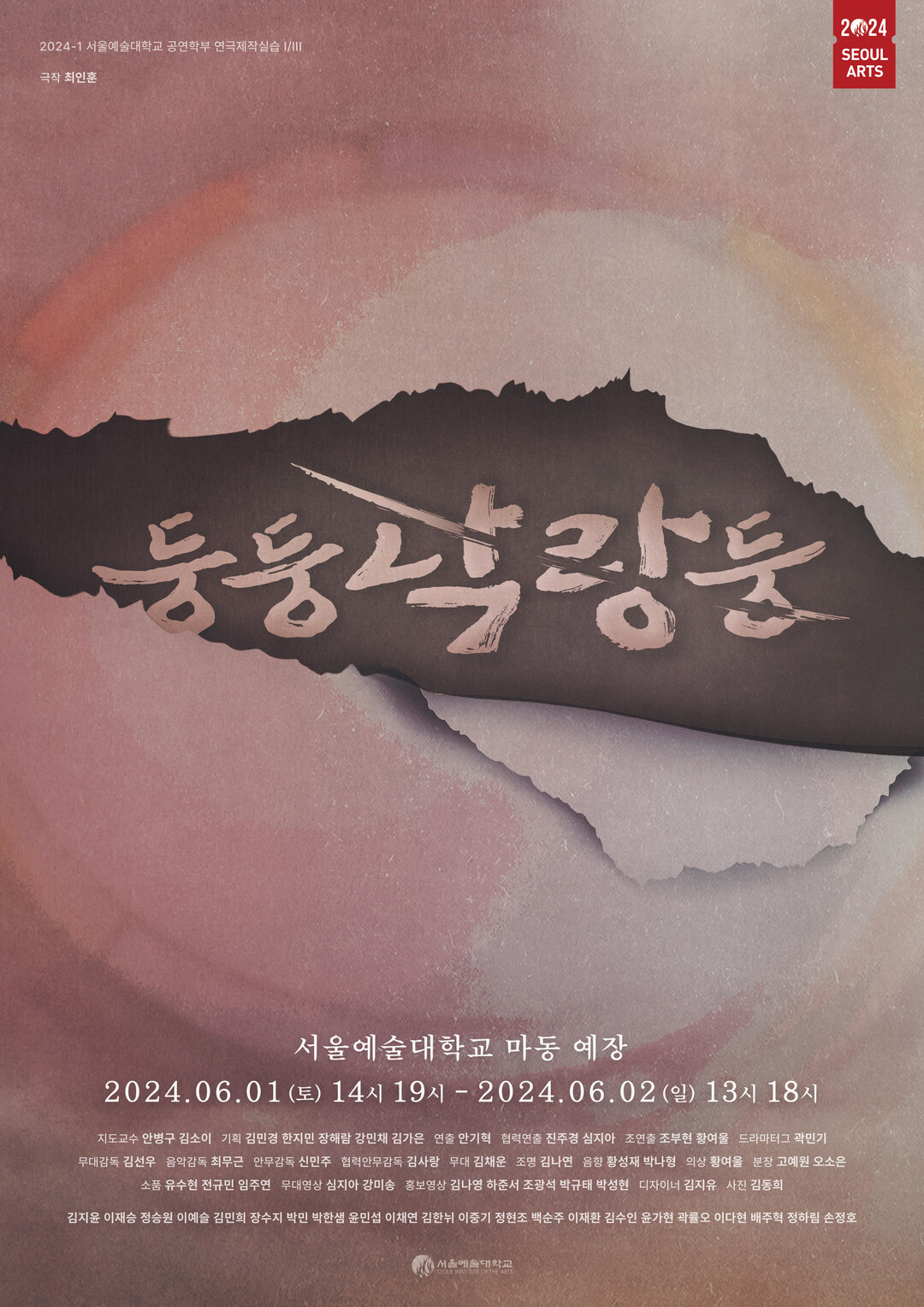 서울예대 연극제작실습 수업으로 진행되는 연극 ‘둥둥 낙랑둥’은 한국무용과 전통음악 요소를 포함한 창작과정을 거쳐 조화로운 고전적 아름다움을 선사한다. 더불어 사랑에 대한 심도 있는 성찰이 필요한 오늘날, 현대인에게 사랑의 본질을 탐구할 수 있는 기회를 마련하고자 한다.