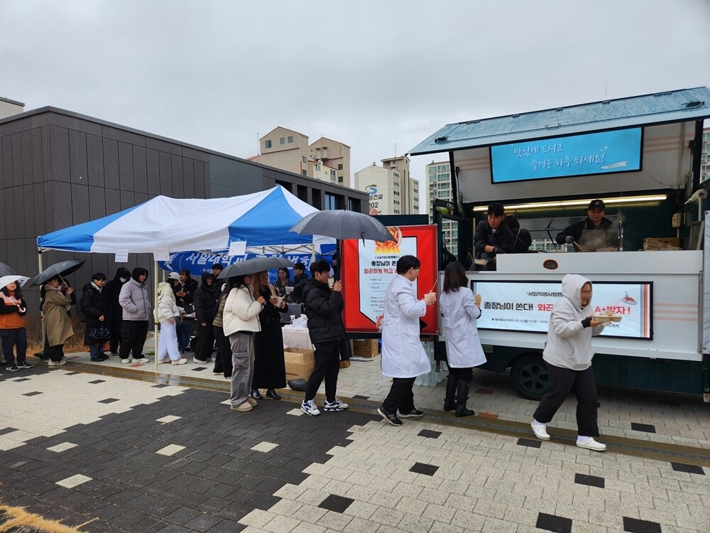 [대학저널 온종림 기자] 서일대학교 학생지원처는 지난 12월 서일학생사랑캠페인 일환으로 ‘총장님이 쏜다! 화끈하게 먹고 A+받자!’ 행사를 개최했다.