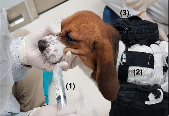 강아지를 통한 경구 포도당 부하 검사 장면.사진=UNIST(울산과학기술원) 제공 |