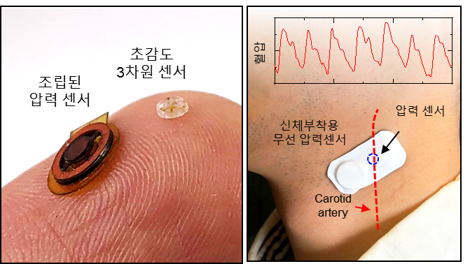 심혈관 질환은 인류 건강을 위협하는 주요 원인으로 꼽힌다. 심혈관 질환 예방과 조기 발견을 위해서는 실시간으로 혈압이나 심박수 등을 모니터링할 시스템이 필요하다. 하지만 기존 모니터링 시스템은 유선 시스템이라 공간 제약이 심하고, 병원에서만 사용할 수 있어 일상생활 중 접근성이 떨어졌다. 이러한 한계를 극복하기 위해 심혈관 정보를 측정하는 다양한 무선 압력센서가 개발되고 있지만, 측정값이 주변 온도 및 환경 변화에 영향을 받아 정확성에 한계가 있다.