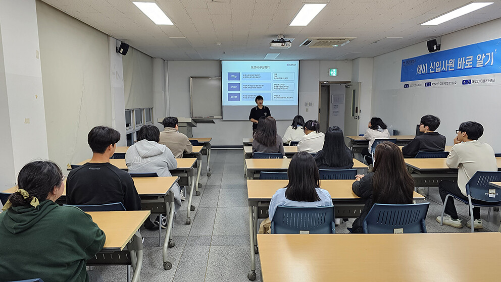 [대학저널 이선용 기자] 원광대학교 대학일자리플러스센터가 첫 직장을 갖게 될 청년들을 대상으로 직장생활에 필수적인 인성함양, 직장예절, 보고기법, 문서작성능력 향상을 위한 특강 ‘예비 신입사원 바로알기’를 10월 25~27일 온라인과 오프라인을 병행해 진행했다.