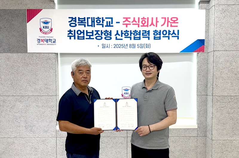 [대학저널 온종림 기자] 경복대학교 영상미디어콘텐츠학과와 남양주시 소재 중소기업 ㈜가온이 실무 중심의 교육과 창의융합 인재 양성을 위해 손을 맞잡았다. 두 기관은 지난 5일 산학협력 협약(MOU)을 체결하고, 학생들에게 현장 견학, 프로젝트 협업, 맞춤형 커리큘럼 개발, 인턴십 및 취업 연계등 다양한 실무형 프로그램을 제공하기로 했다.