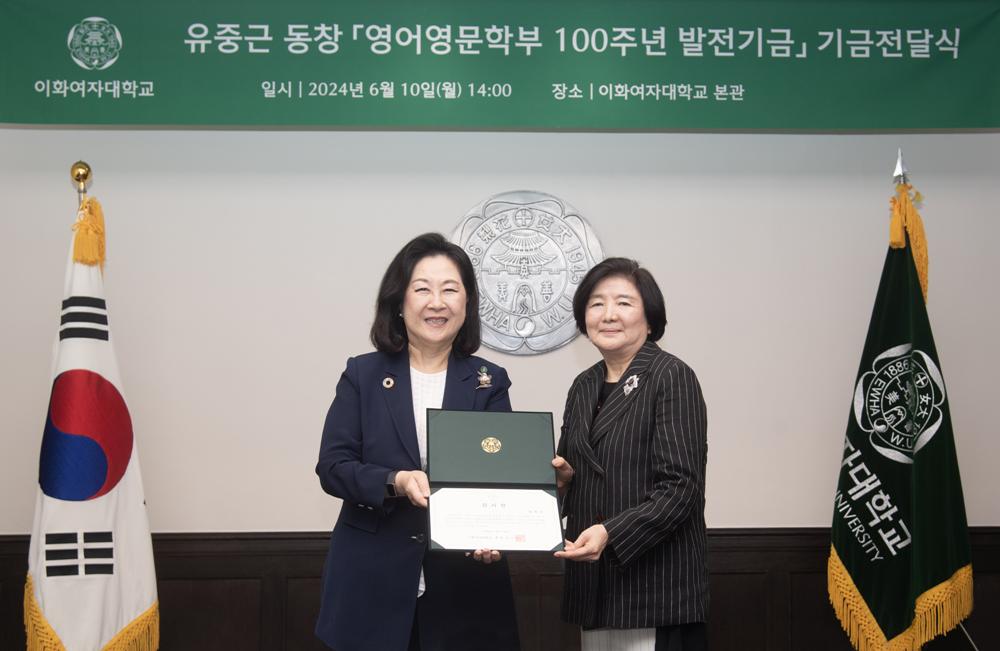 [대학저널 온종림 기자] 이화여자대학교가 유중근 동창(영문 67졸)으로부터 ‘영어영문학부 100주년 발전기금’ 1억 원을 기부받았다.