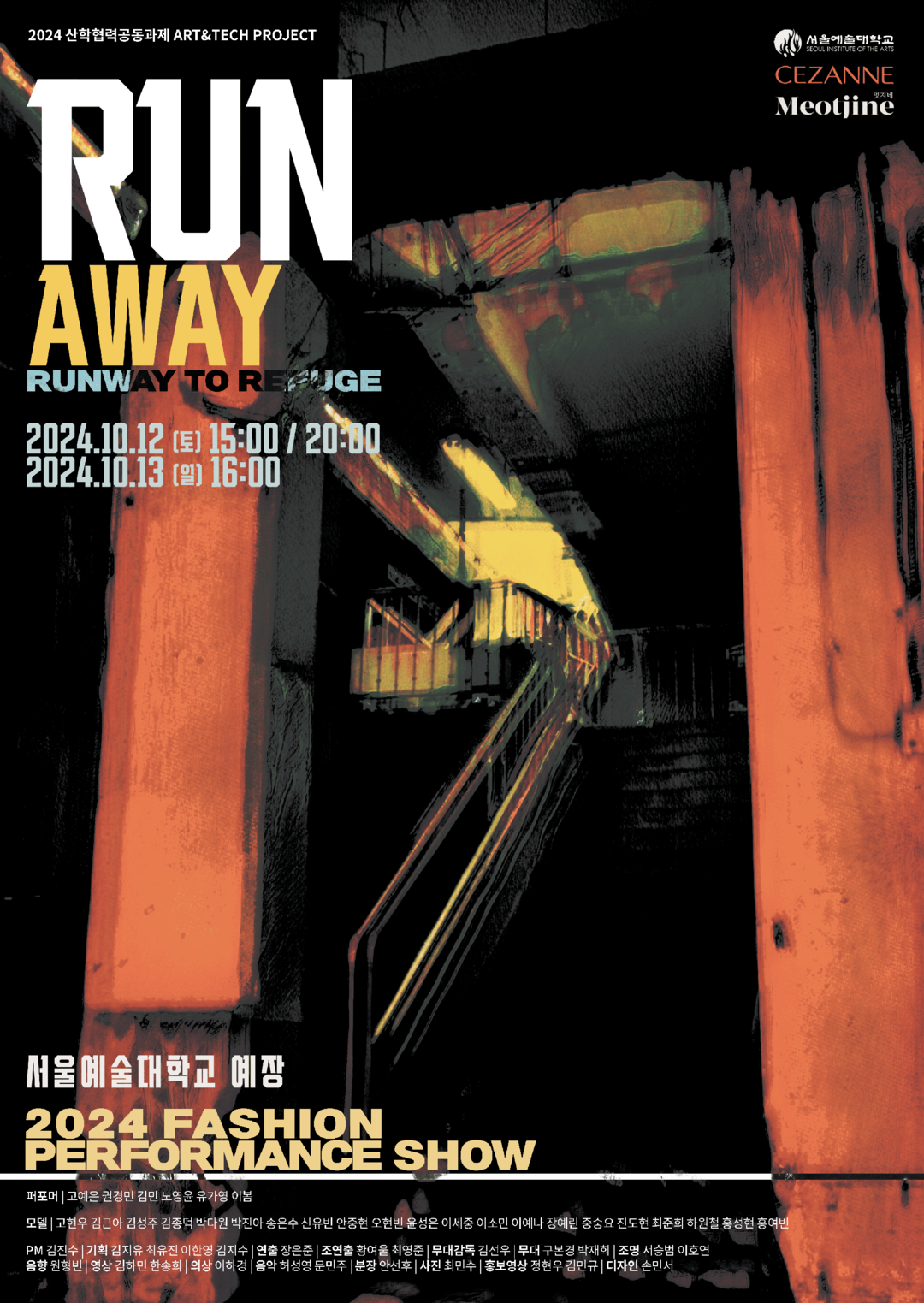 ‘RunAway’는 단순한 의상 발표를 넘어, 2030세대가 겪는 정신적, 사회적 스트레스에서 벗어나고자 하는 과정을 패션, 예술, 기술이라는 다양한 언어로 풀어낸 공연이다. 연극적 스토리텔링과 퍼포먼스, 그리고 최첨단 기술을 결합하여 관객들에게 잊지 못할 경험을 선사할 예정이다.