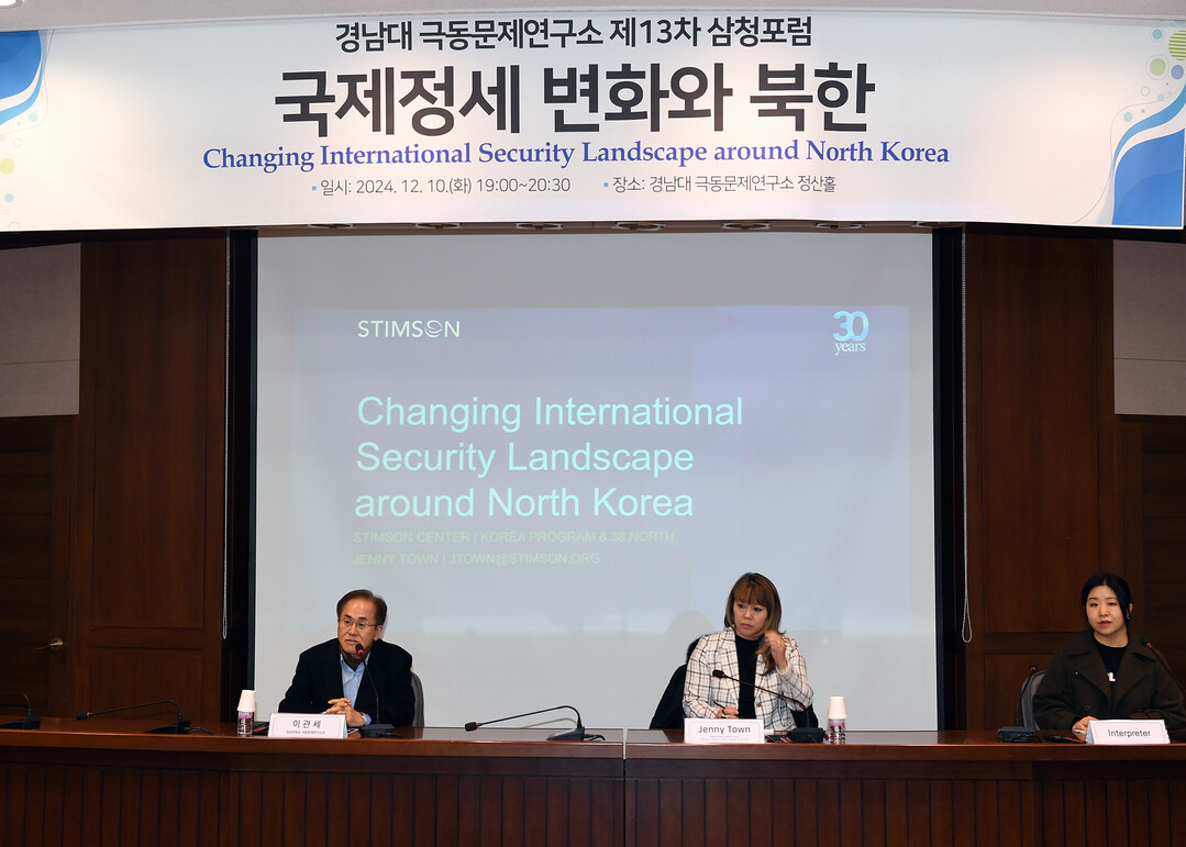 제니 타운 ‘38노스’ 디렉터는 포럼에서 “북한은 다극체제 형성과 서방의 영향력 차단을 목표로 하는 네트워크에 적극적으로 참여하고 있다”며 “러시아와의 협력을 통해 무기와 군사기술 지원을 확보하면서도, 스스로를 ‘정상국가’로 포장하려는 노력을 이어가고 있다”고 강조했다