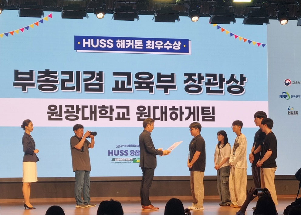 [대학저널 온종림 기자] 원광대학교가 교육부 및 한국연구재단에서 개최한 ‘인문사회 융합인재양성사업(휴스·HUSS) 융합캠프’에서 해커톤 최우수상(부총리겸 교육부장관상)을 수상했다.