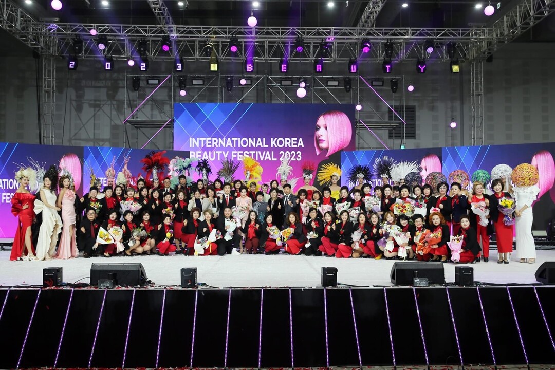 지난 5일부터 대전 DCC 컨벤션센터에서 열린 2023 IKBF 국제한국미용페스티벌에 출전자들의 모습. 사진=건양사이버대 제공 |