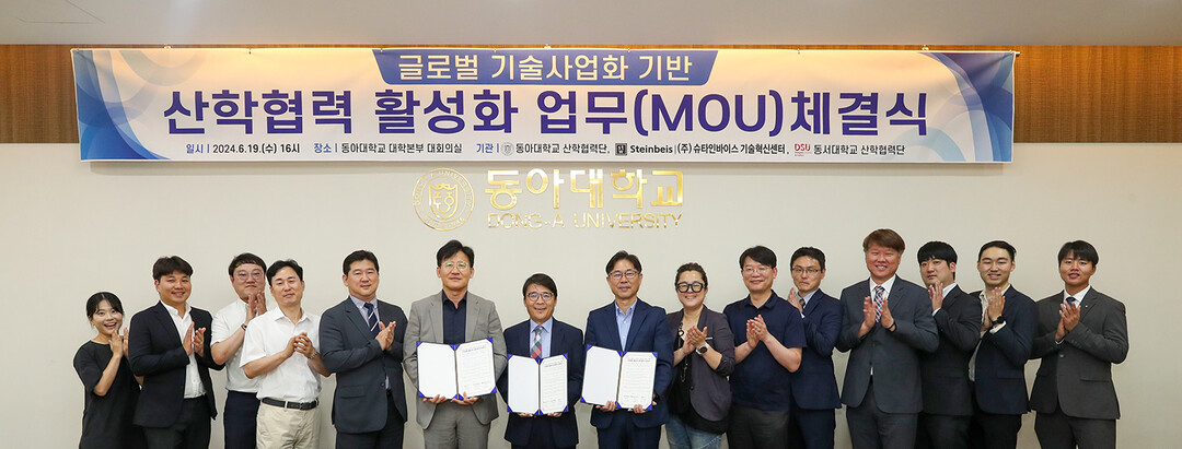 [대학저널 이선용 기자] 동아대학교는 산학협력단과 동서대 산학협력단이 독일 ㈜슈타인바이스 한국센터와 ‘글로벌 기술사업화 기반 산학협력 활성화 업무협약’을 체결했다고 24일 밝혔다.