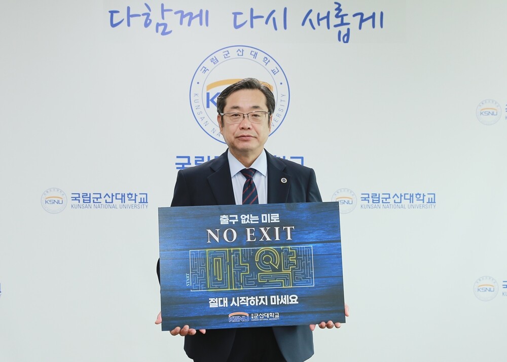 군산대 이장호 총장이 ‘NO EXIT’ 마약 범죄 예방 릴레이 캠페인에 참여했다. 사진=군산대 제공 |