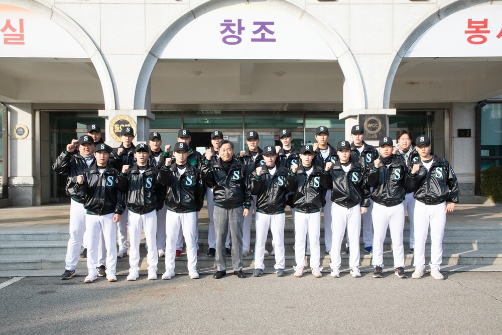 [대학저널 온종림 기자] 신성대학교) 야구부 선수단 19명이 해외 전지훈련을 앞두고 지난 12일 서명범 총장에게 신고식을 진행했다.