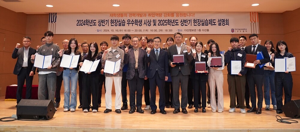한기대가 16일 ‘2024년 상반기 현장실습 우수 학생 및 우수실습 기관 시상식’과 현장실습 제도설명회를 개최했다. 사진=한기대 제공 |