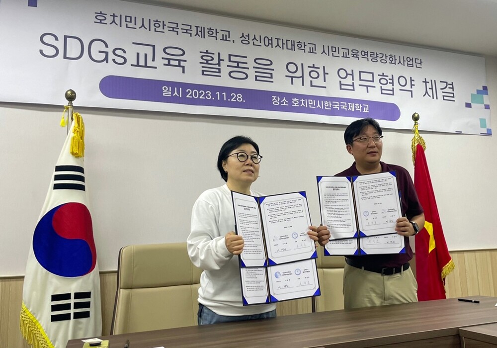 [대학저널 온종림 기자] 성신여자대학교 시민교육역량강화사업단이 지난달 28일, 베트남 호치민시한국국제학교와 ‘지속가능발전목표(SDGs) 교육 활동을 위한 업무협약’을 베트남 현지에서 체결했다.