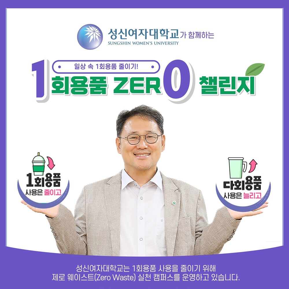 [대학저널 온종림 기자] 이성근 성신여자대학교 총장이 4일 환경부에서 주관하는 1회용품 제로 챌린지(1 zer0)에 동참했다.
