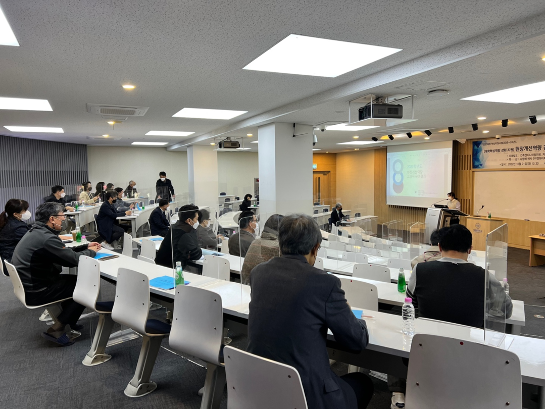 교내 사례 중 건축엔지니어링전공 권오철, 장명호 교수의 ‘현장실습 내실화를 위한 PBL(Problem Based Learning) 과제 수행 방안’과 자동화시스템전공 이성재, 이영옥 교수의 ‘2021학년도 현장개선역량 교과목 운영 결과 : 산업재해 감소를 위한 IoT 융합 자동화 기술적용’을 발표하며 구성원간 우수사례를 공유했다.
