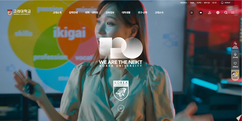 고려대학교는 학교의 브랜드와 아이덴티티를 직관적이고 세련되게 표현하고, 맞춤형 정보 제공, 콘텐츠 접근성 강화, 반응형 웹서비스 등 이용자 패턴 분석을 통한 시스템 설계로 편리한 사용자 경험(UX)을 선사해 높은 평가를 받았다.