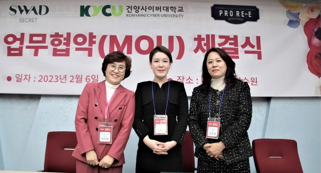 [대학저널 김진수 기자] 건양사이버대학교는 글로벌뷰티학과가 지난 6일 스와디시크릿·프로리에와 다자간 협약체결을 했다고 9일 밝혔다.
