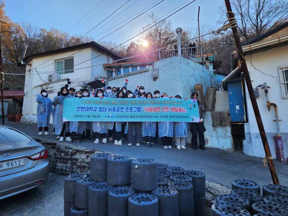 [대학저널 온종림 기자] 인천대학교 법학부 재학생과 교직원 등 17명이 지난 1일 인천광역시 미추홀구 학익동 햇골길에서 사랑의 연탄 기증 및 배달 봉사와 생필품 지원 행사를 개최했다.