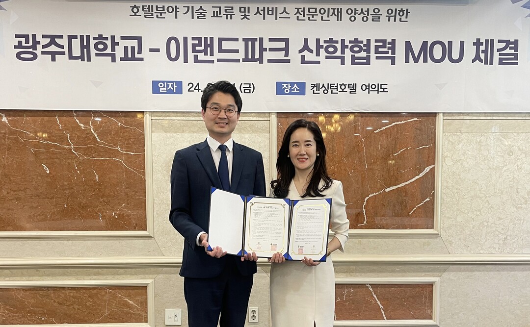 한편, ㈜이랜드파크는 현재 국내외 22곳의 호텔과 리조트, 총 5,000여 개 객실을 운영 중이며, 이번 협약을 통해 광주대 항공서비스학과 9명의 학생이 켄싱턴리조트 서귀포, 켄트호텔 광안리 바이 켄싱턴, 켄싱턴호텔 평창에서 각각 하계현장실습을 진행할 계획이다.