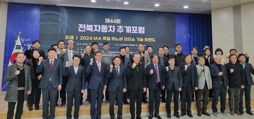 ‘제44회 전북 자동차 추계포럼’ 참석자들이 기념촬영을 하고 있다. 사진=국립군산대 제공 |