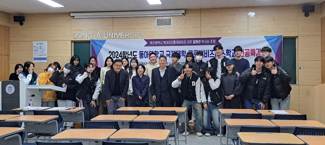 [대학저널 이선용 기자] 동아대학교 국제대학 글로벌비즈니스학과가 부산광역시 빅데이터통계담당관 과장 김현선 박사를 초청, 전공특강을 개최했다.