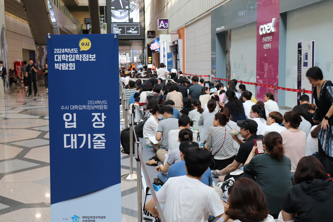 수험생과 학부모들이 박람회 입장을 기다리고 있다. 사진=조영훈 기자 |