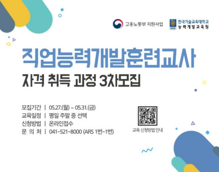 능력개발교육원은 올해 1월 15일부터 총 4차에 걸쳐 총 2,400여명의 직업훈련교사를 양성할 계획이다. 이번 모집이 3회차 모집이다.
