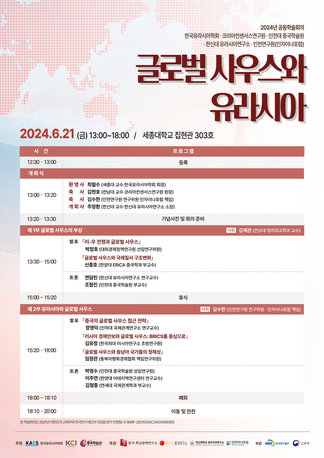 이번 학술회의는 이처럼 주목받고 있는 글로벌 사우스를 주제로 글로벌 사우스의 부상 배경과 이것이 향후 한국과 중국을 포함한 유라시아 지역 및 글로벌 정세에 미칠 영향을 분석하고자 기획되었다.