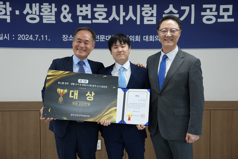 [대학저널 온종림 기자] 영남대학교 법학전문대학원(이하 로스쿨)에 재학 중인 이강일 학생이 지난 11일 법학전문대학원협의회 대회의실에서 열린 ‘제1회 로스쿨 입학·생활 및 변호사시험 수기 공모’ 시상식에서 대상을 수상했다.