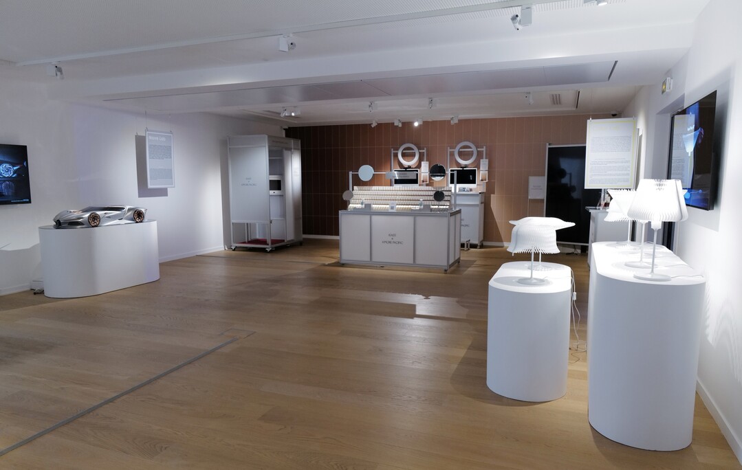 ▲전등 갓의 모양 변화에 따라 램프에서 나오는 빛의 강도와 방향을 바꿀 수 있는 배상민 교수팀의 키네틱 조명 ‘딜라이트(D'light)’ ▲전기차 기술을 활용해 미래 모빌리티 디자인의 비전을 제시하는 박현준 교수팀의 ‘부가티 ‘숨’(Bugatti Le Souffle)’ 등 제품 및 모빌리티 디자인도 선보인다.