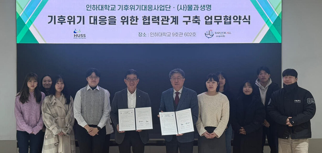 김정호 인하대 기후위기대응사업단장은 “(사)물과생명과의 협약으로 빗물 활용 네트워크를 확대하고, 정책 개발을 지원하며 지역사회와 글로벌 차원의 기후위기 대응에 기여할 융합인재 양성에 더욱 노력할 것”이라고 밝혔다.