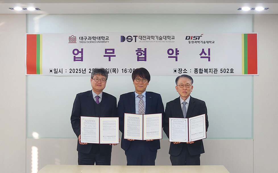 [대학저널 온종림 기자] 대전과학기술대학교가 20일 대구과학대 종합복지관에서 3개 광역지자체 전문대학 간 보건 인력양성을 위한 K-Healt DDD 거버넌스 구축 업무협약을 체결했다.