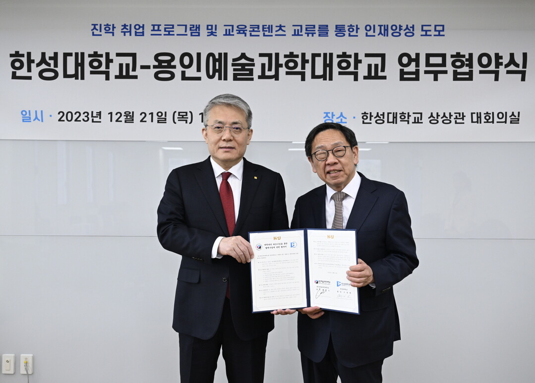 [대학저널 이선용 기자] 한성대학교와 용인예술과학대학교이 진학 및 취업 등을 위한 업무협약을 지난 21일 체결했다.