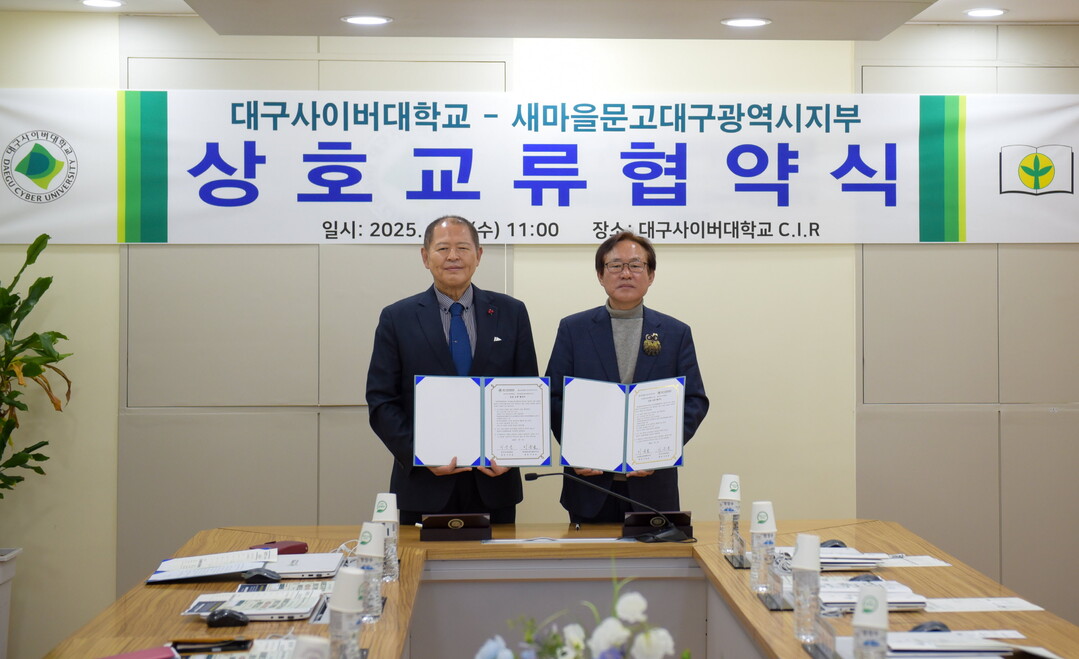 [대학저널 이선용 기자] 대구사이버대학교는 1월 8일 새마을문고 대구광역시지부(회장 이승로)와 상호교류 협약을 체결했다.