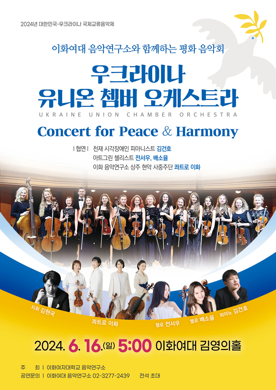 협연자로 선정된 ‘콰트로 이화’는 2024년 이화여대 음악연구소의 첫 상주음악가로 위촉된 이화 출신의 현악 사중주팀이다. 이번 우크라이나 유니온 쳄버 오케스트라와의 평화음악회를 서두로, 내년 미국 카네기홀에서 개최될 ‘이화여대 음악대학 100주년 기념 음악회’ 등 이화여대 안팎에서의 다양한 공식 활동을 앞두고 있다.