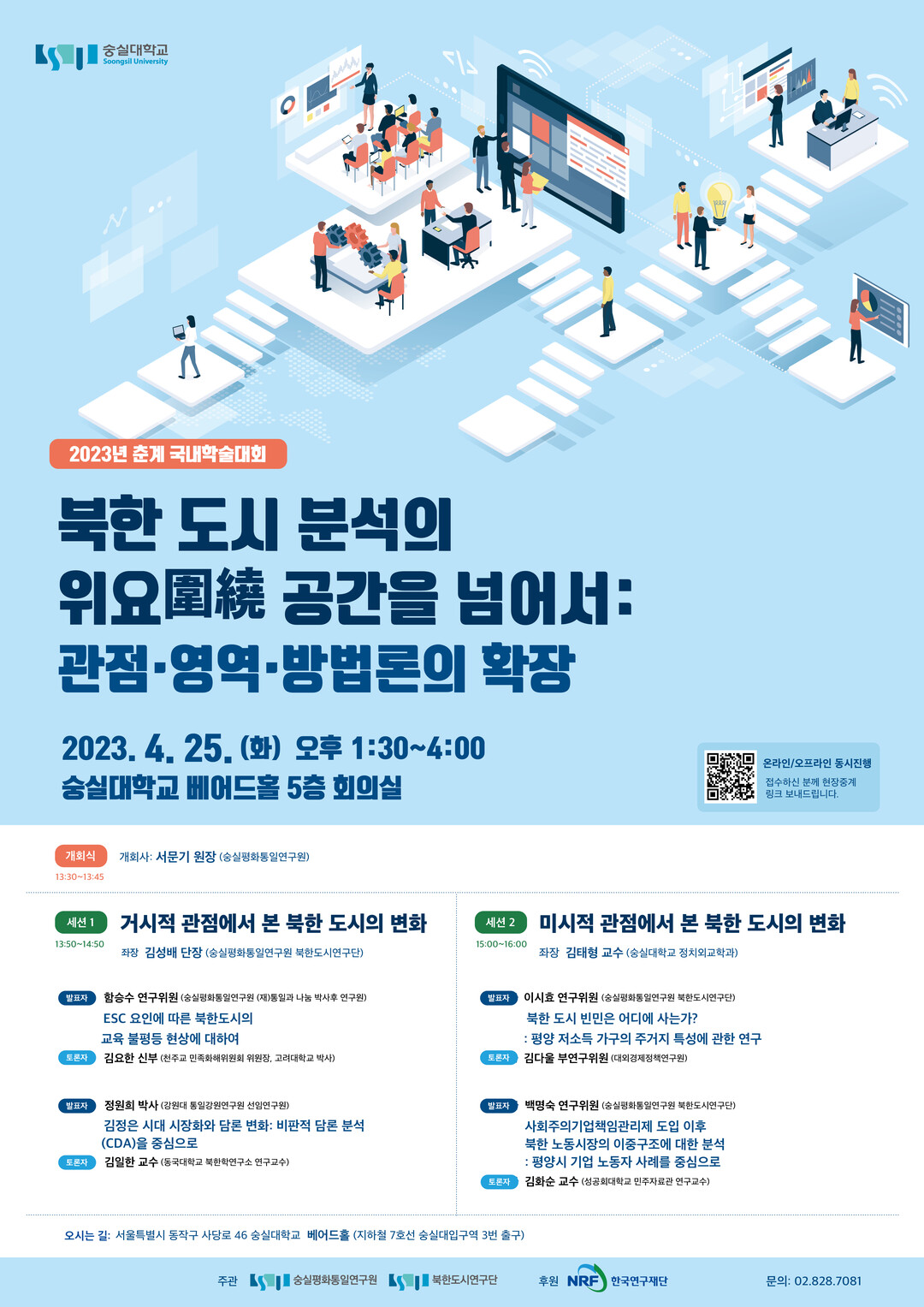 학술대회 세션 1에서는 함승수 숭실평화통일연구원 연구위원이 ‘ESC 요인에 따른 북한도시의 교육 불평등 현상에 대하여’라는 주제로 발제하고, 김요한 신부(천주교 민족화해위원회 위원장)가 토론을 진행할 예정이다.