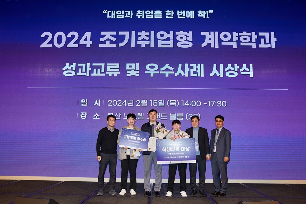 [대학저널 온종림 기자] 경기과학기술대학교가 교육부와 KIAT(한국산업기술진흥원)이 공동으로 주관한 2023년 조기취업형 계약학과 우수사례 수기 공모전에서 3개의 상을 수상하는 쾌거를 거두었다.