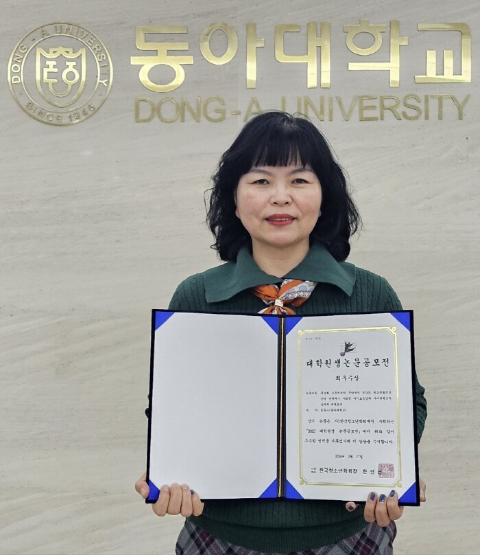 현재 경남 양산시 덕계동에 있는 초등학교에서 상담교사로 재직하고 있는 정 박사수료생은 “조규판 지도교수님께서 세심하게 논문지도를 해주셔서 이번 논문 완성을 위해 노력했고 그 결과 최우수상을 받아 큰 영광”이라며 “어린이들의 고민을 들어주고 그들의 행복을 위해 학부모·교사들과 협업, 스스로 행복한 길잡이로 살아가겠다”고 말했다.