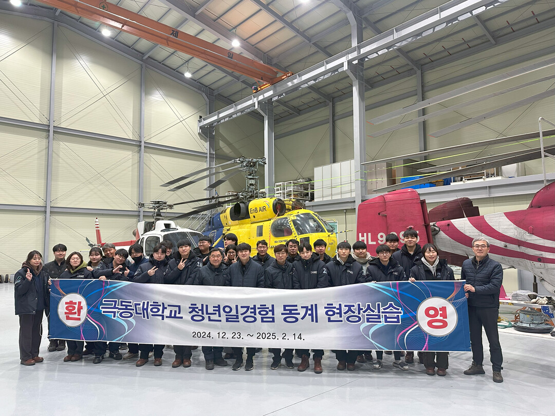 [대학저널 이선용 기자] 극동대학교는 항공정비학과 학생들이 겨울방학을 활용해 충북 단양군에 위치한 헬리콥터 운영사 (주)이엔비에어(대표 김창원)에서 현장 실습 프로그램을 진행 중이라고 9일 밝혔다. 이번 프로그램은 학생들의 해외 취업 역량 강화와 항공기 정비 기술 향상을 목표로 마련됐다.