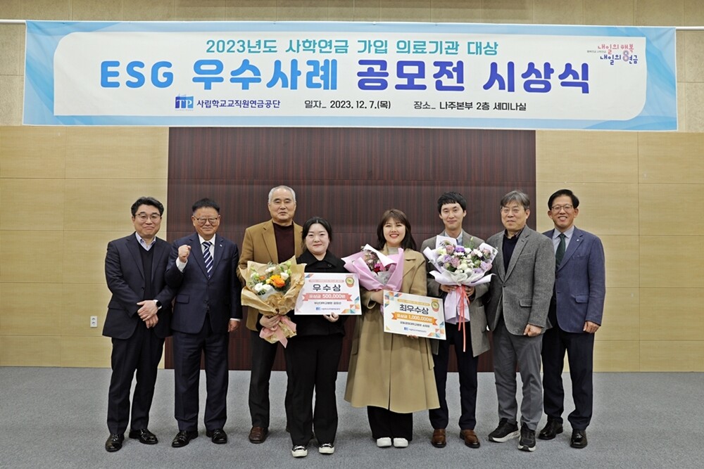 [대학저널 온종림 기자] 사립학교교직원연금공단(사학연금)이 7일 사학연금 가입 의료기관 대상 ESG 경영 공모전의 시상식을 개최했다.