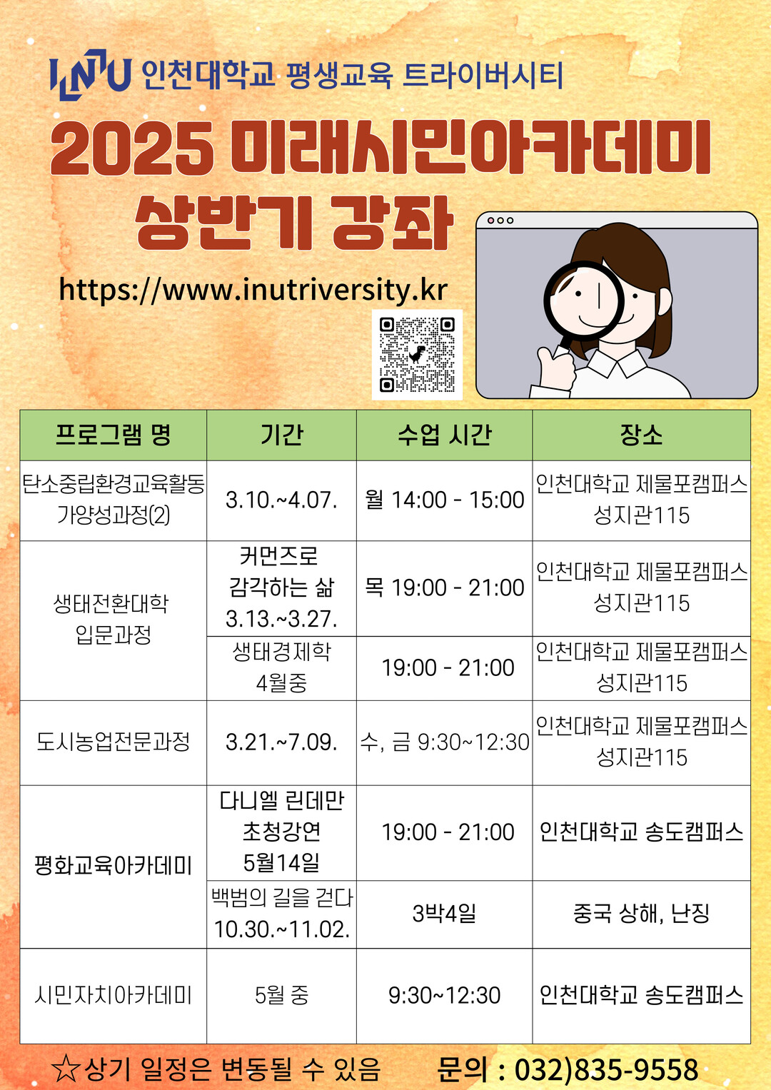 이번 프로그램에는 생태적 삶으로 전환을 모색하는 ▲<생태전환대학 기초입문과정>, 지역사회 탄소중립 교육 주체 형성을 목표로 하는 ▲<탄소중립 환경교육활동가양성과정>, 사단법인 인천도시농업네트워크와 공동으로 추진하는 ▲<도시농업전문가과정> 등 기후위기 시대 환경의제 강좌들이 더욱 다채롭게 열릴 예정이다.