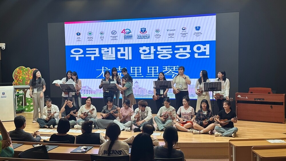 경동대와 중국 산동상무직업학원 학생들이 우쿠렐레 합동공연을 하는 모습. 사진=경동대 제공 |