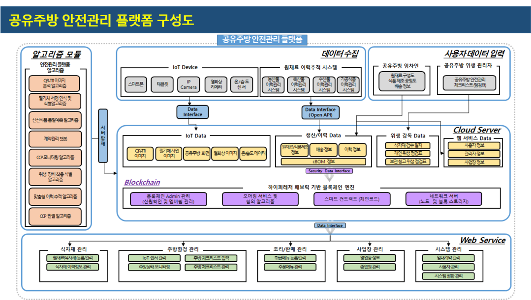AI-블록체인 기반 공유주방 안전관리 플랫폼 구성도. |