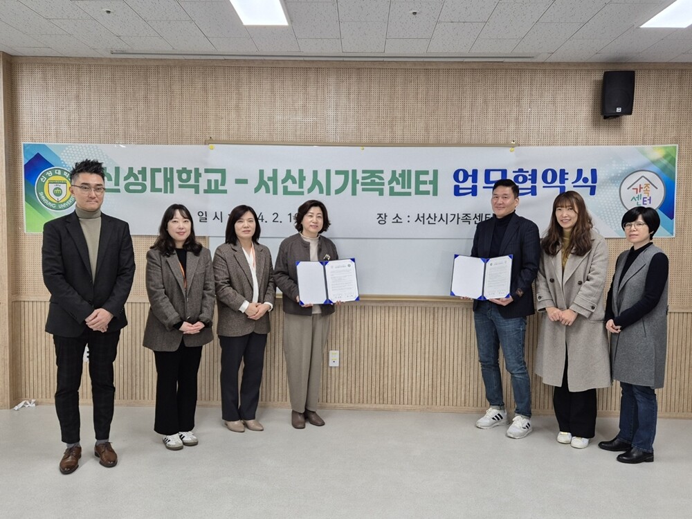 [대학저널 온종림 기자] 신성대학교가 지난 19일 서산시 가족센터에서 신성대학교-서산시가족센터 간 업무협약식을 진행했다. 이날 행사에는 서산시가족센터 류순희 센터장 및 황은주 운영지원팀장 등 센터 관계자가 참석했으며, 신성대에서는 손인환 하이브사업 센터장 및 신영재 사업추진팀장 등 대학 측 관계자가 참석했다.