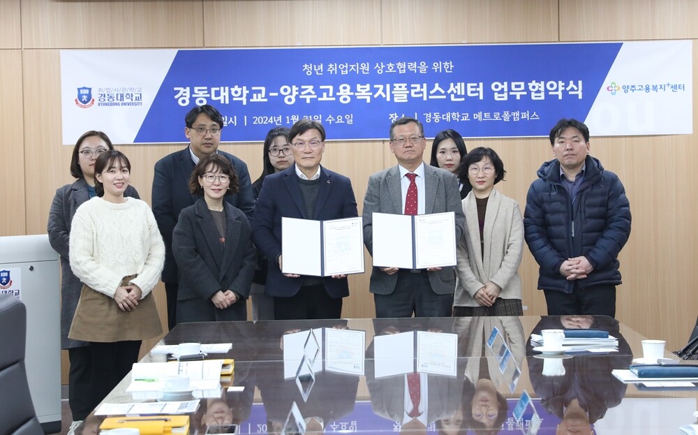 [대학저널 온종림 기자] 경동대학교가 지난 1월 31일 양주 메트로폴캠퍼스에서 양주시 고용복지플러스센터와 청년취업 지원 상호협력을 위해 협약을 체결했다.