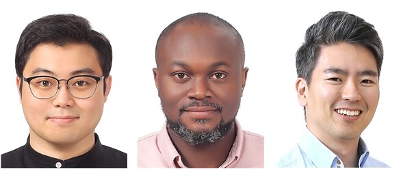 왼쪽부터 국립한밭대 전자공학과 신수호 박사과정, 프린스 아노치 박사, 이경재 교수. |