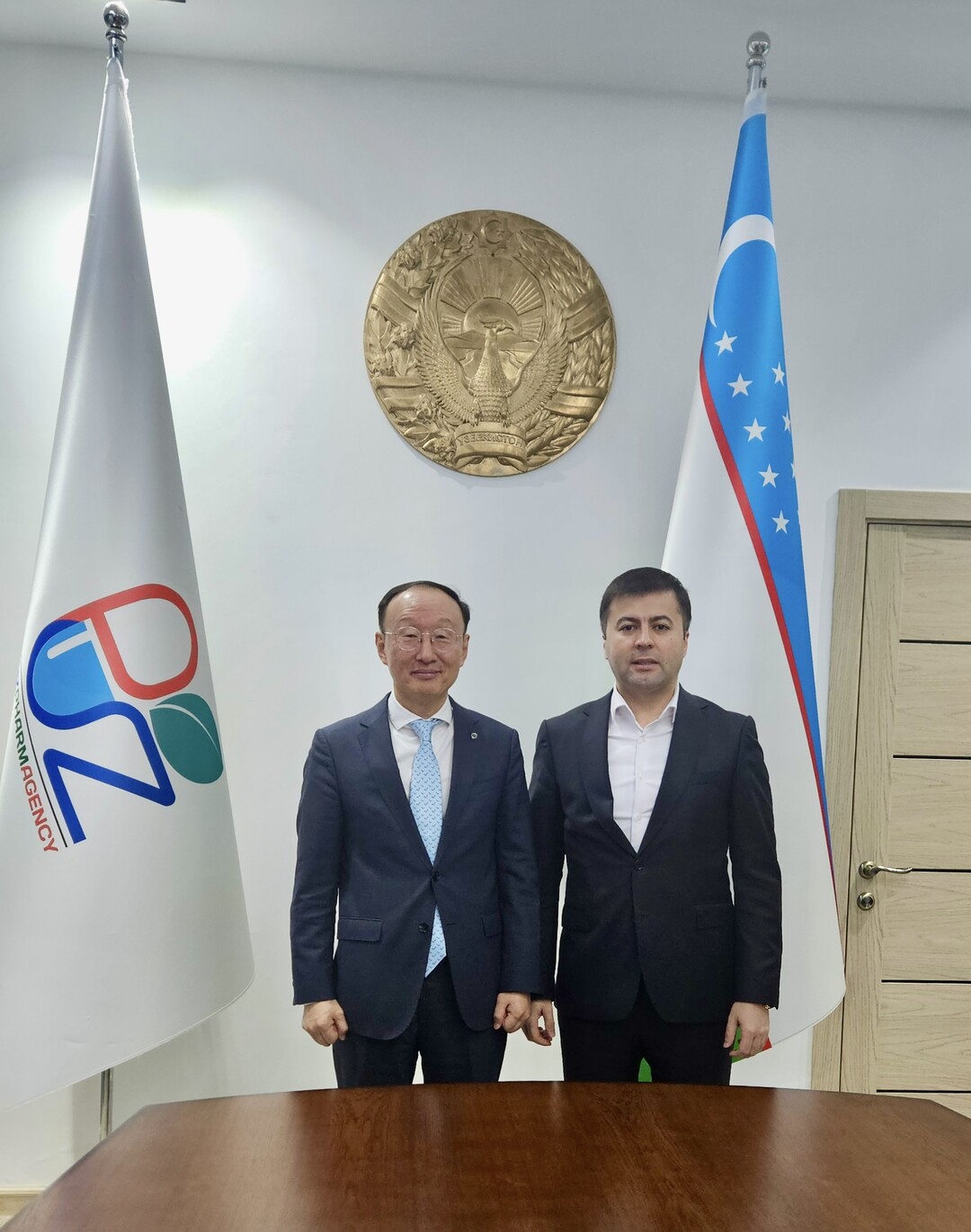 왼쪽부터 연세대 한균희 교수, 제약산업발전청 아지조프 압둘라 압디살라모피치 청장. |
